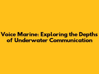 Voice Marine: Exploring The Depths Of Underwater Communication