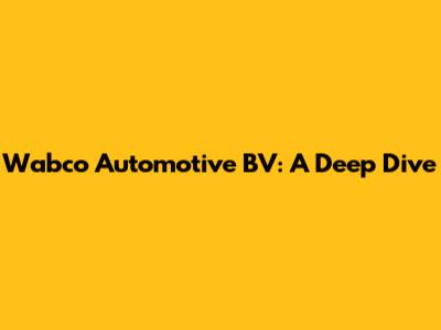 Wabco Automotive BV: A Deep Dive