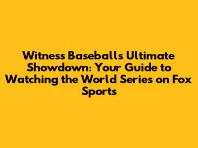 Witness Baseball's Ultimate Showdown: Your Guide to Watching the World Series on Fox Sports