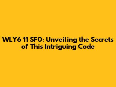 WLY6 11 SF0: Unveiling the Secrets of This Intriguing Code