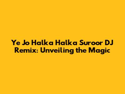 Ye Jo Halka Halka Suroor DJ Remix: A Deep Dive