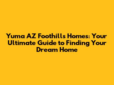 Yuma AZ Foothills Homes: Your Ultimate Guide