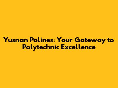 Yusnan Polines: Your Gateway To Polytechnic Excellence