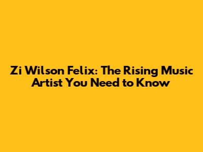 Zi Wilson Felix: The Rising Music Artist You Need To Know